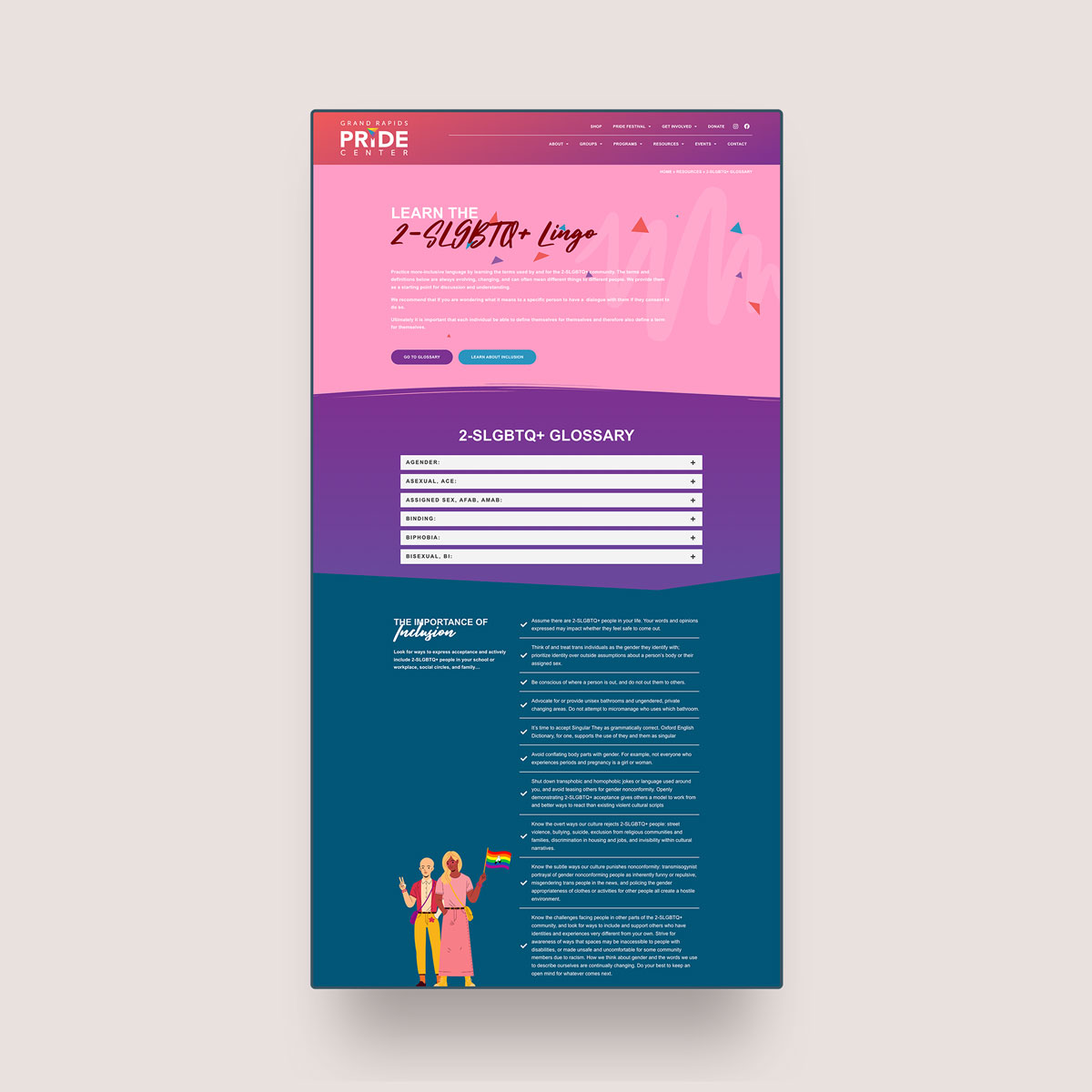 The site includes a dedicated term glossary, with space for pronouns and evolving language. This section was designed with flexibility in mind, acknowledging that inclusive language grows and changes over time.