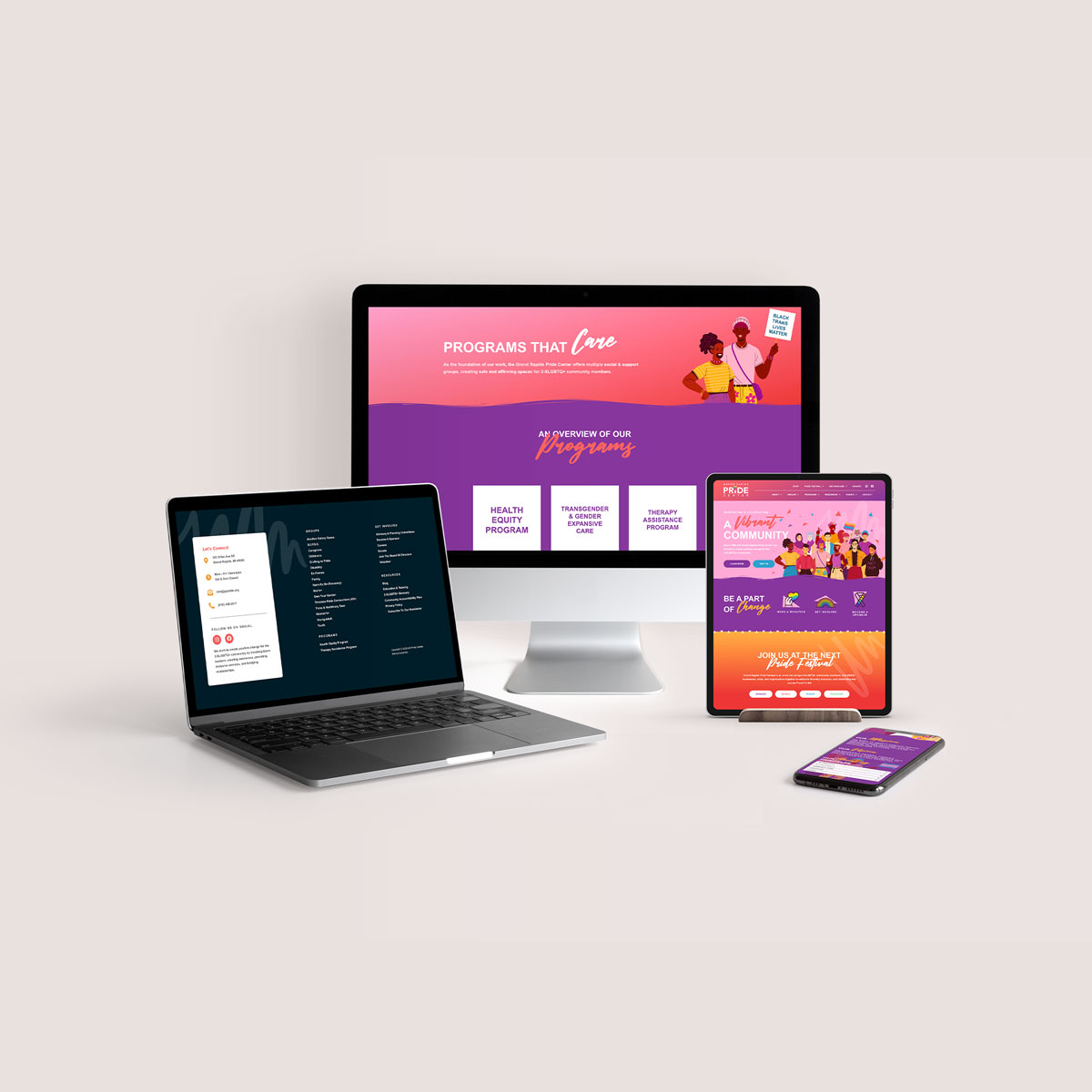 The finished website supports the Grand Rapids Pride Center as both an informational resource and an active community space. It demonstrates that accessibility and strong visual identity are not opposing forces — they are complementary when handled with care and technical understanding.